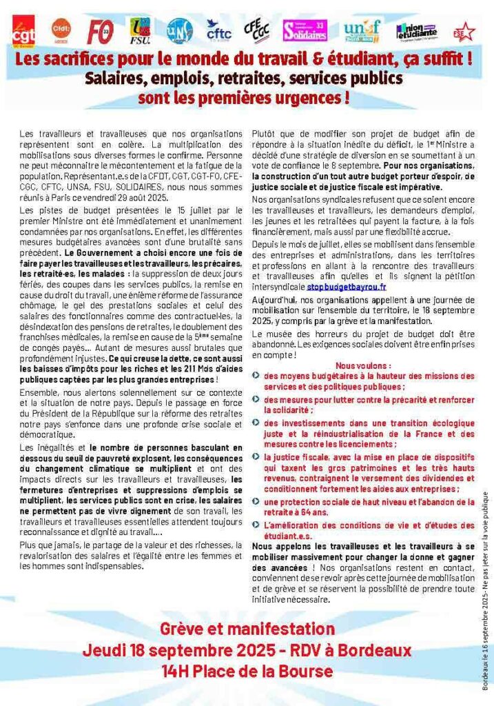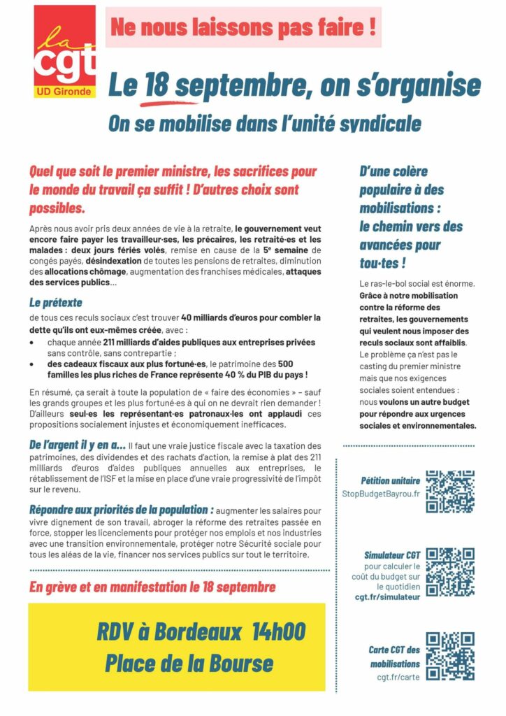 Gironde 18 septembre : Les sacrifices pour le monde du travail, ça suffit ! Partager: Navigation de l’article Précédent Article précédent 18 septembre : Retrouvez toutes les initiatives en NASuivant Article suivant : 20 septembre : Portes ouvertes ! Autres actualités 18 mai : Rassemblement en soutien à la Palestine 9 octobre : Rassemblement des retraité.e.s 15 mars : Journée mondiale du travail social, c’est pas la fête pour tout le monde !