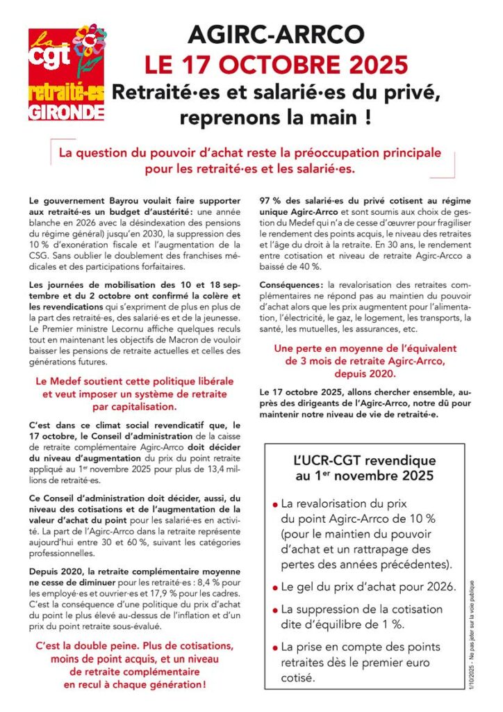 • 17 octobre : AGIRC-ARRCO – Retraité.es & salarié.es du privé, reprenons la main !