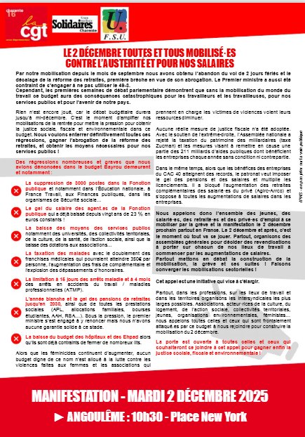 • 2 décembre : Toutes et tous mobilisé.e.s contre l’austérité et pour nos salaires