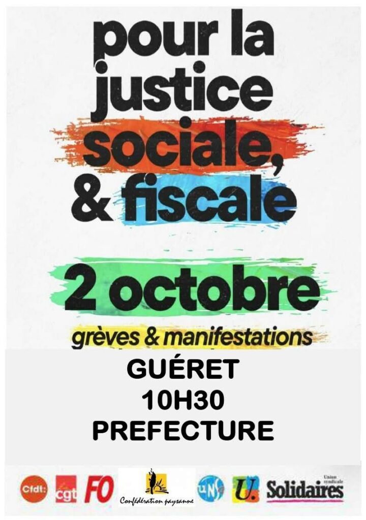 Creuse 2 octobre: Pour la justice sociale & fiscale Partager: Navigation de l’article Précédent Article précédent 2 octobre: On accélère !Suivant Article suivant : 2 octobre: Pour la justice sociale & fiscale Autres actualités 8 mars : Projection-Débat « Debout les femmes ! » à Aubusson 14 février : Retraite aux flambeaux à Aubusson 1er mai : Ensemble pour la paix, les libertés, la justice sociale et contre l’extrème droite