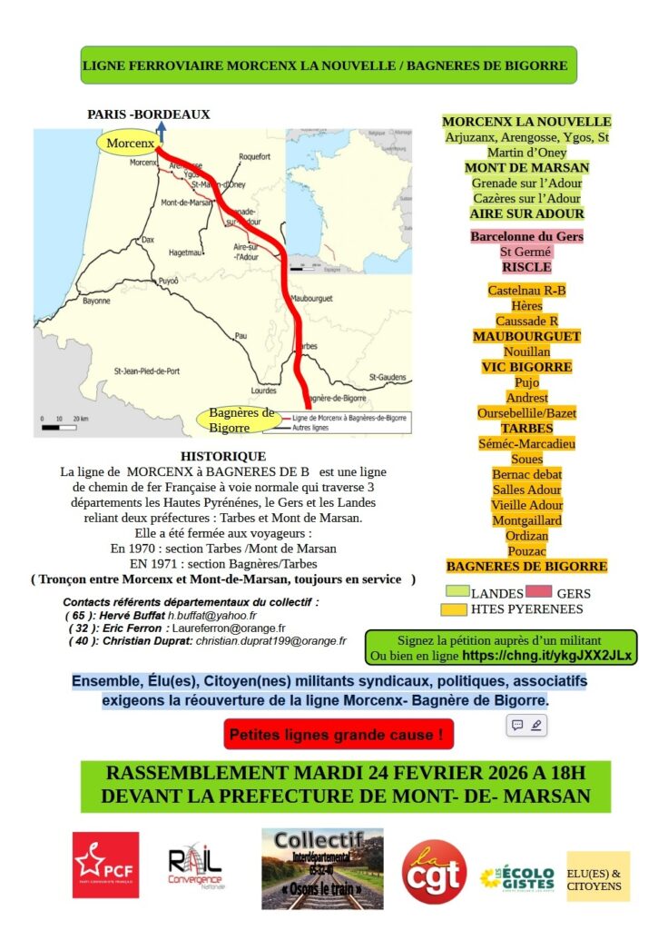 24 février : Exigeons la réouverture de la ligne Morcenx-Bagnère de Bigorre