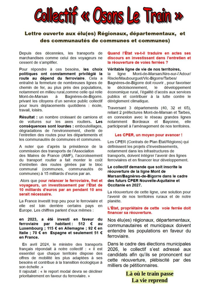 exigeons la réouverture de la ligne Morcenx- Bagnère de Bigorre