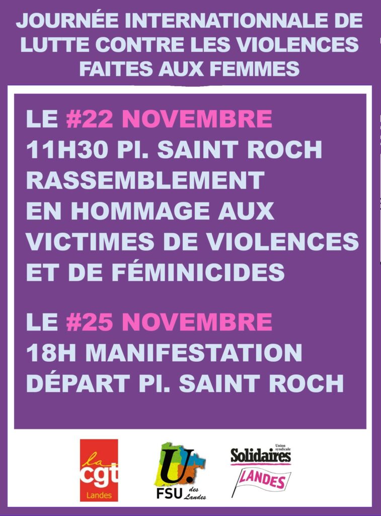 22 & 25 novembre: Journée internationale de lutte contre les violences faites aux femmes