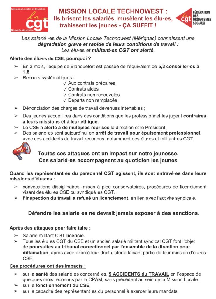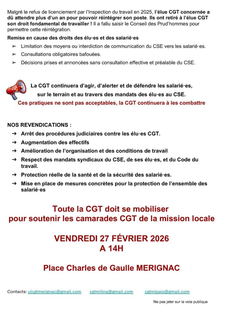 27 février : Soutien aux salarié.es de la Mission Locale Technowest de Mérignac