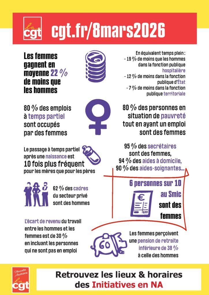 A la une Activité Régionale 8 mars : Retrouvez ICI toutes les initiatives en NA Telecharger le tract Partager: Navigation de l’article Précédent Article précédent Non à l’intimidation et à la violence ! Continuons à agir contre les idées d’extrême droite ! Autres actualités Loi pouvoir d’achat : l’alternative CGT L’Echo en région – mars 2021 Cursus Journées d’études Handicap