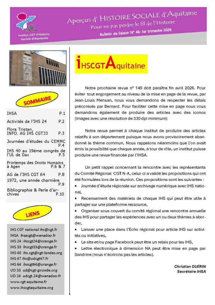 Aperçus d’Histoire Sociale d’Aquitaine n° 46